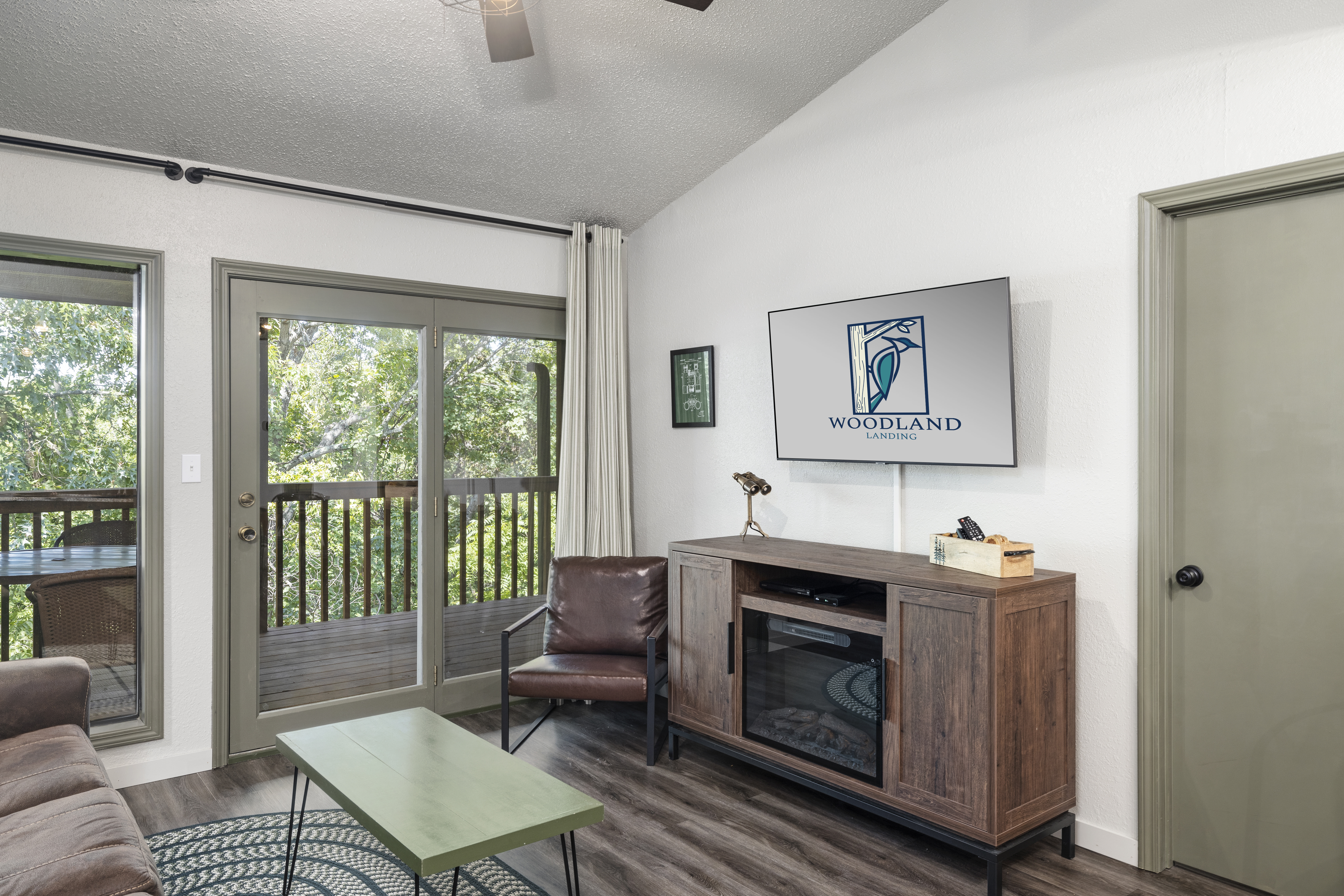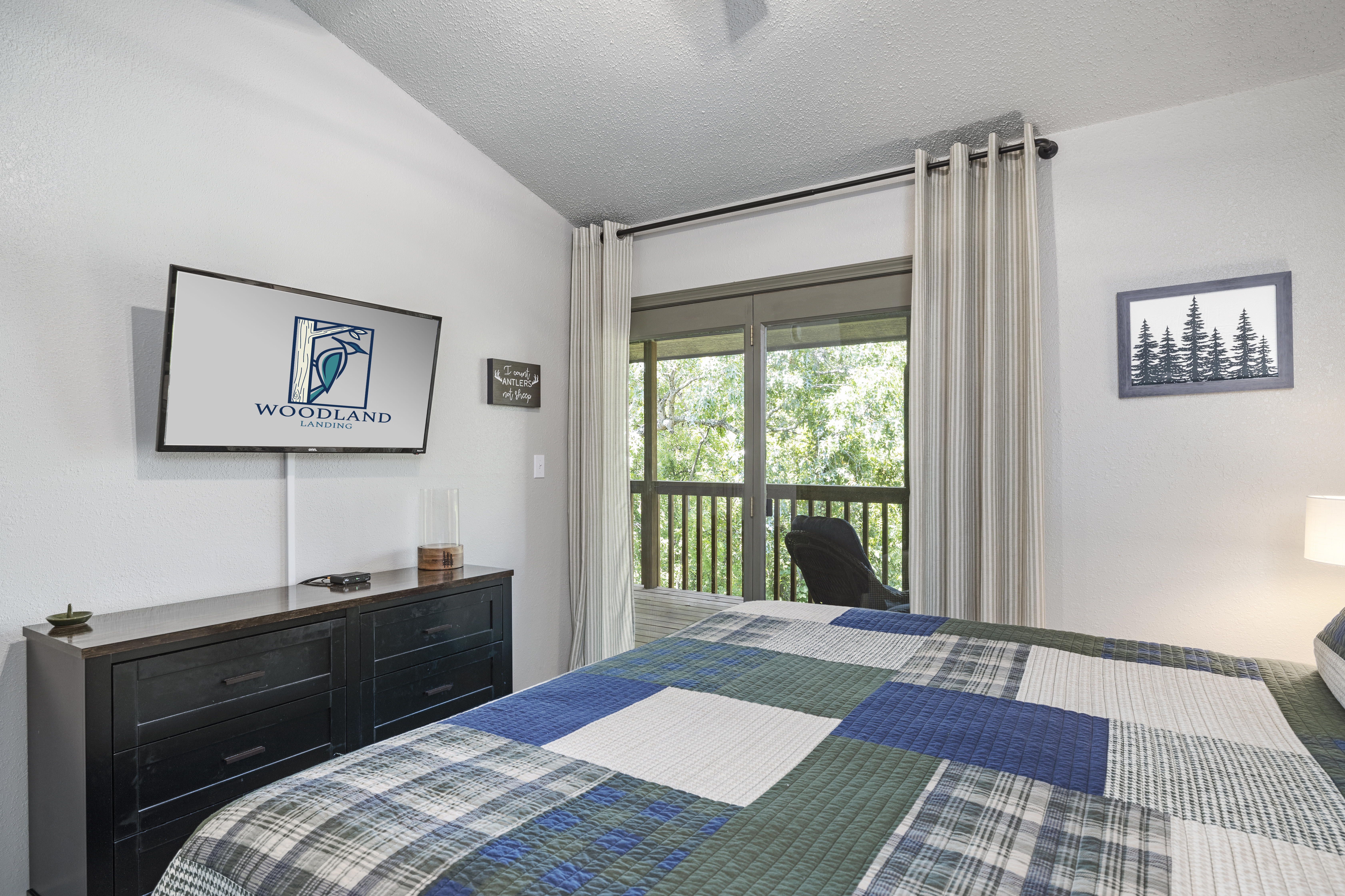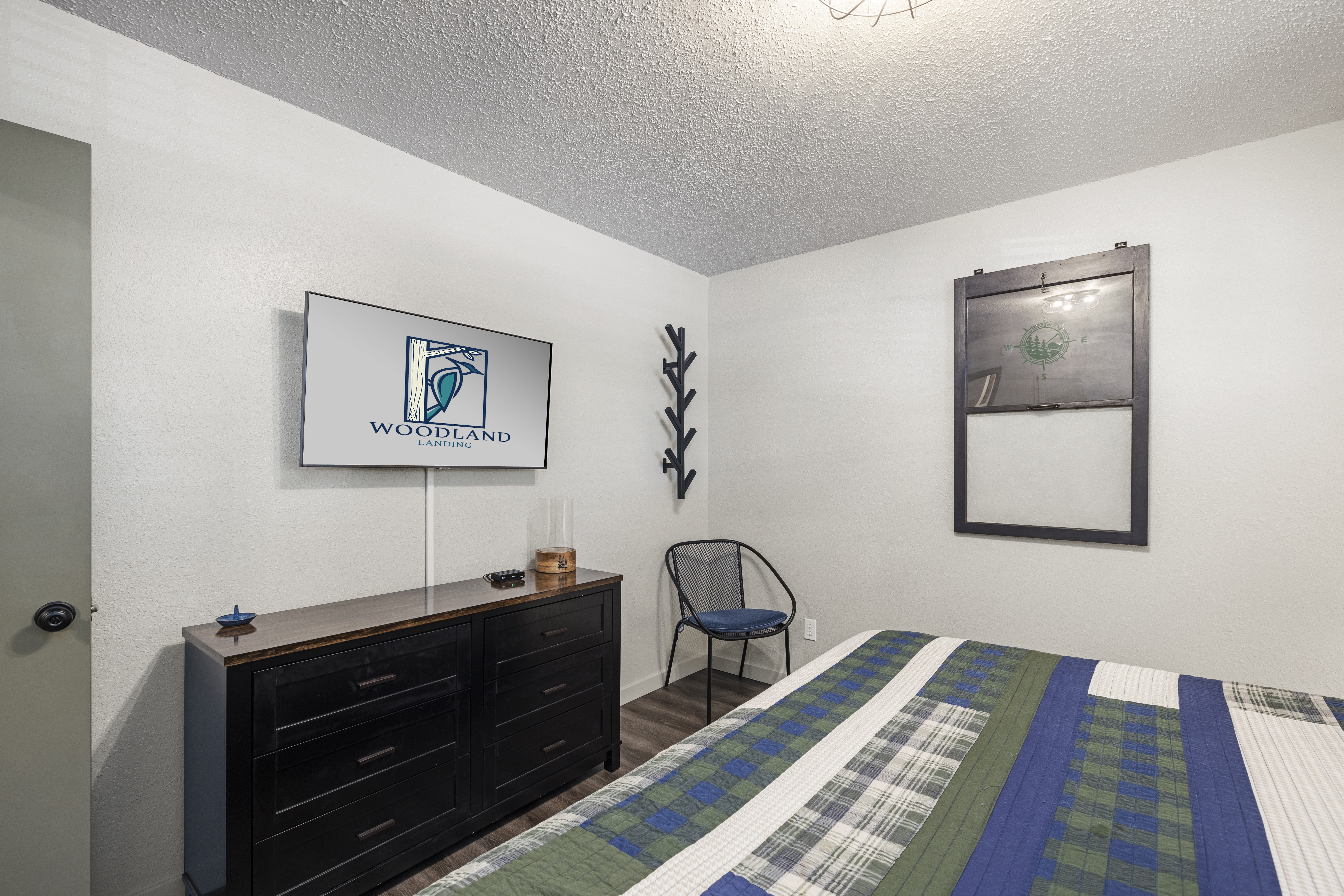 1. Relax in modern comfort Woodland Landing blends cozy charm with contemporary amenitiesβplush king and queen beds, a sofa sleeper, and smart TVs throughout for a stress-free stay.